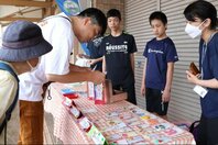 いらっしゃいませー!ポチ袋にストラップ、ハーブにメダカ、いろいろありますよ♪ 新潟の妙高市立総合支援学校の生徒が朝市に出店
