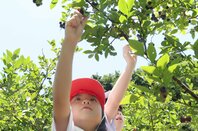 もぎたてのブルーベリーは甘さも酸味も格別♡ 新潟県妙高市の妙高高原小児童が収穫体験、大物は500円玉ほどの大きさ!高い場所にも手が伸びる♪