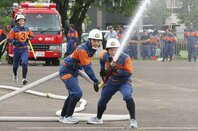 万一の火災に備え団結がっちり!新潟妙高市消防団が総合演習 ポンプ操法競い装備点検