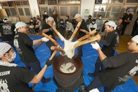 息ぴったりの餅つきにびっくり!小千谷市東山地区の風習「五人杵搗き餅」披露 12月7、14日にも見学会