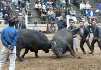 1トンの巨体が激突!「牛の角突き」小千谷市で初場所、観光客ら1000人の視線くぎ付け