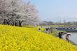 ピンクと黄色、鮮やかに共演♪…桜と菜の花が見頃・新潟市西蒲区の上堰潟公園、ライトアップも