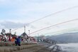 海に架ける一斉放水の虹!新潟県佐渡市で消防出初め式 安心安全なまちへ士気高める