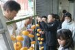 重伝建の町並みを華やかに彩る♪新潟県佐渡市小木町で児童らが軒先に特産のおけさ柿をつるす