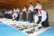 世界平和、震災復興…願いをしたためて 新潟市中央区で国際平和デーに合わせて高校生らが大書を披露