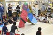 180センチ段ボール力士「はっけよい!」 新潟ふるさと村で巨大紙相撲大会、児童の熱戦に大歓声