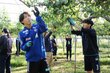 憧れのアルビレックス選手と一緒に農業体験♪ 新潟特産の洋梨ル・レクチエの実の間引き作業に、白根高校生らが汗