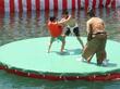海上の土俵「残った、残った」 佐渡市赤泊港まつりで「日本海海上大相撲」、行司が海に落ちる場面も