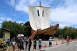 圧巻!160畳の白い帆が青空にはためく 佐渡市・宿根木で復元した千石船を披露する「白山丸まつり」開催