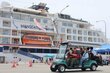 佐渡市小木港でクルーズ船の2次交通の課題探る 小型電動車、シャトルバスなど準備し国交省主催の実証事業
