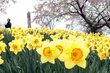 堤防彩る黄色いじゅうたん♪新潟市秋葉区・新津川でスイセン見頃 桜吹雪との”共演”も