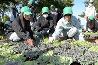 ドライバーに憩いのひと時を…名立谷浜SAに葉ボタンの花壇が登場 高田農業高校の生徒が植栽