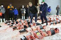 サメずらり!魚市場で競り…上越市の年の瀬の風物詩、保存利く伝統食