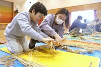 稲わら、ねじってねじって…しめ縄作りに挑戦!佐渡市新穂地域で園児からお年寄りまで体験