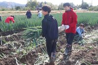 袋に長ネギびっしり、大収穫♪ 柏崎市・アグリード越後で詰め放題イベント