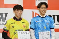J1横浜FC内定のDF細井響・J3北九州内定のFW吉田晃盛、プロでの活躍誓う 新潟医療福祉大男子サッカー部が会見