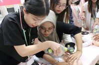 脈拍再現できる人形やアキレス腱の研究…興味深い! 東南アジアの大学生たちが新潟医療福祉大で研修
