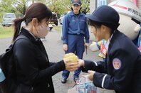 火災は「ナシ」!特産品配り呼びかけ 新潟市の江南消防署が広報活動、暖房器具からの出火に注意