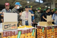 佐渡名産「おけさ柿」、世界遺産を機に全国へ! 新潟市江南区で初競り、佐渡市長らトップセールス
