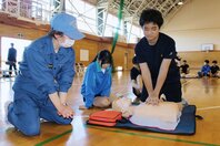急病人や火災で命つなぐ意識高める、新潟市江南区の横越中、心肺蘇生や初期消火の実技を体験