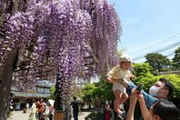 [動画あり]どの角度から見たい?1万以上のフジの花房…新潟市江南区の北方文化博物館 漂う甘い香り、来場者魅了