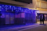 岩室温泉、青い世界に浸る 新潟市西蒲区の温泉街で2月16日まで「灯りの庭」