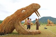大蛇に飲み込まれる~~!? 新潟市西蒲区で「わらアートまつり」開幕・・・伝説モチーフの巨大オブジェ群が出現!