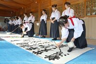 世界平和、震災復興…願いをしたためて 新潟市中央区で国際平和デーに合わせて高校生らが大書を披露