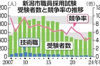 新潟市職員採用試験の競争率上昇、2024年度は4・6倍に 実施時期の前倒し奏功、技術職は減少止まらず