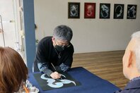 [動画あり]複雑な龍の体を一筆描き!?絶妙タッチご覧あれ♪新潟長岡市の絵師西川陽春さんが新潟市中央区で個展・4月29日まで