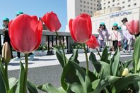 どの花見てもきれいだな♪新潟市民が咲かせたチューリップ、萬代橋彩る 「育てた花かわいい」園児もオープニングイベントで笑顔