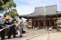 仏花やろうそくの処理、大丈夫?新潟市消防局、寺院でお盆前に防火訓練や立ち入り検査
