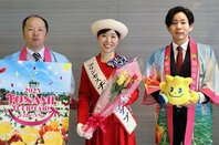 4月22日からとなみチューリップフェア 富山県砺波市のPR隊、新潟市中央区のメディアシップ訪問