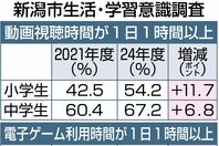 新潟市の小学生、動画視聴時間が急増!5割超が「1日1時間以上」 2024年度市生活・学習意識調査