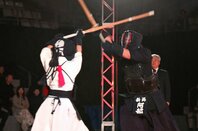 強豪選手と腕試し!会場ライトアップ、スモークで登場 魅せる剣道も演出 新潟県鳥屋野総合体育館でフェス