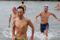 寒い!痛い!叫びながらも決意新たに…新潟市中央区の関屋浜で新年の健康願う寒中水泳