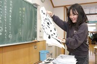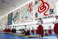 「進化」「挑め」若き決意を大書!新潟市中央区で東京学館新潟高の書道部員、恒例の新春パフォーマンス