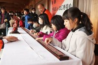 特大そろばんで「はじき初め」新潟市中央区の護国神社で子どもたちが挑戦 そろばん長さ3・6メートル、251桁