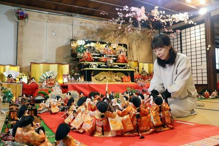 数多くのひな人形が飾られる「在郷町小須戸ひな・町屋めぐり」が、新潟市秋葉区小須戸の商店街で7日に始まる。初お披露目の一品や遊び心あふれる飾り付けなど、個性豊かなひな人形たちが訪れる人を出迎える。