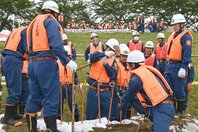7・11水害の教訓を未来へつなぐ 糸魚川市の姫川河川敷で総合水防演習、土のう積みや孤立者救助など訓練