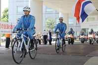 夕暮れは事故多発!早めのライト点灯、反射材着用を 秋の交通安全運動出動式で呼びかけ