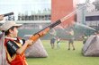 ぬれると「落ち武者」 弥彦競輪場の芝生を戦国時代の合戦場に見立て、水鉄砲を打ち合うイベント