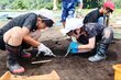 土器のかけら…石皿の破片…大明神遺跡で次々発見!小千谷南小児童が発掘体験、気分は考古学者