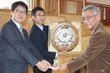 からくり時計見て楽しんで! 新潟県労働金庫小千谷支店などが魚沼市の子育て支援施設に寄贈