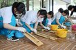 カラムシから織物用の繊維ゲット!新潟妙高市の新井高校生徒が「苧引き」体験 根気よく作業、伝統文化へ理解深める