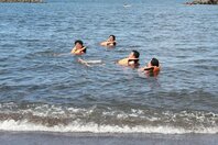 「ノールック」シュートも!柏崎市の海で水球試合 県内外7チームが参加、激しいゲーム展開