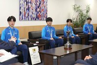 中学最後の大舞台・フットサル大会で日本一☆ 長岡JYFC(新潟県長岡市)の4選手が地元の柏崎市長に報告