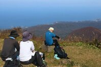 秋晴れの空、紅葉の米山に日本海、360度の大パノラマ 新潟県柏崎市で登山客が景色楽しむ