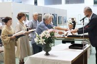 創作の素晴らしさ今後も大切に 新潟県南魚沼市で南魚沼美術展覧会の表彰式、賞状を手渡し入賞者たたえる