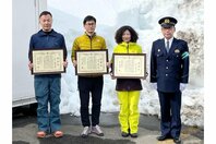 神楽ケ峰(新潟県湯沢町)でクレバスに落ちた女性を救助、通りかかった4人が連携 南魚沼署が感謝状